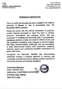 Chartered Accountant internship | Manish S. Jain & Associates November 2025- Ongoing